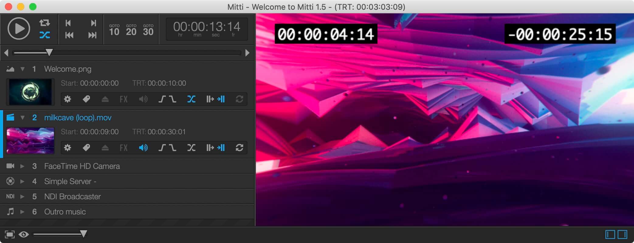 Mitti 是一款专为 macOS 设计的专业视频播放和现场演示软件,广泛应用于现场活动、剧院、广播、演出和多媒体制作等领域。它以其稳定性和丰富的专业功能而受到赞誉。近期,软件更新至 2.8.14 版本,带来了一系列改进和问题修复。