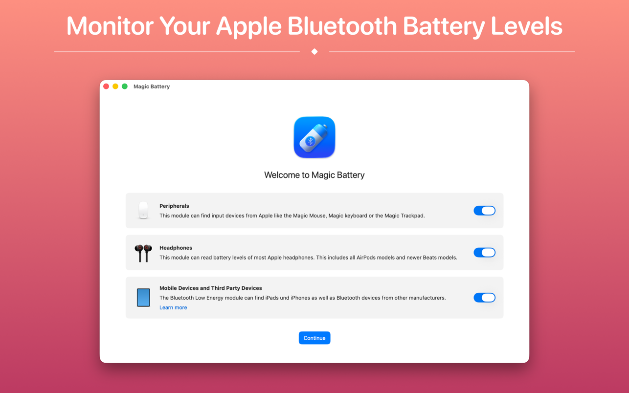 2. 支持设备广泛:支持 Apple Magic Mouse、Magic Mouse 2、Magic Trackpad 2、Apple Wireless Keyboard、AirPods 等 Apple 外设以及部分 Logitech 鼠标和键盘型号。