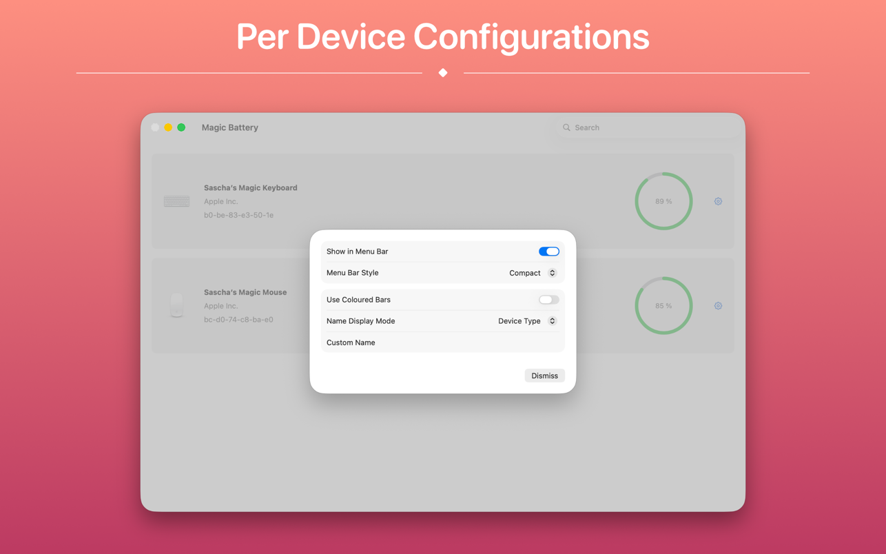 1. 菜单栏实时电量显示:在菜单栏以图标、百分比或圆形电量条形式展示已连接外设电量,快速一眼掌握所有设备状态。