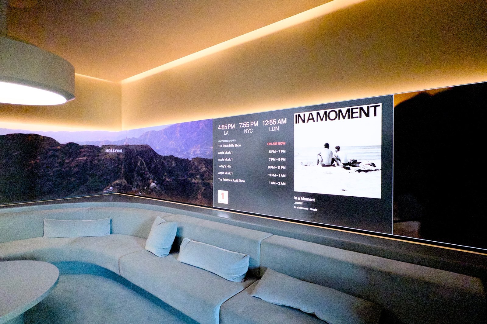 建筑内设有两条主题长廊(A级艺人走廊与档案走廊),展示"Apple Music难忘时刻"的影像与艺术作品。